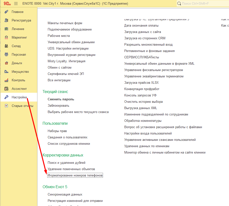 - Откройте раздел Настройки — Корректировки данных — Форматирование номеров телефонов.