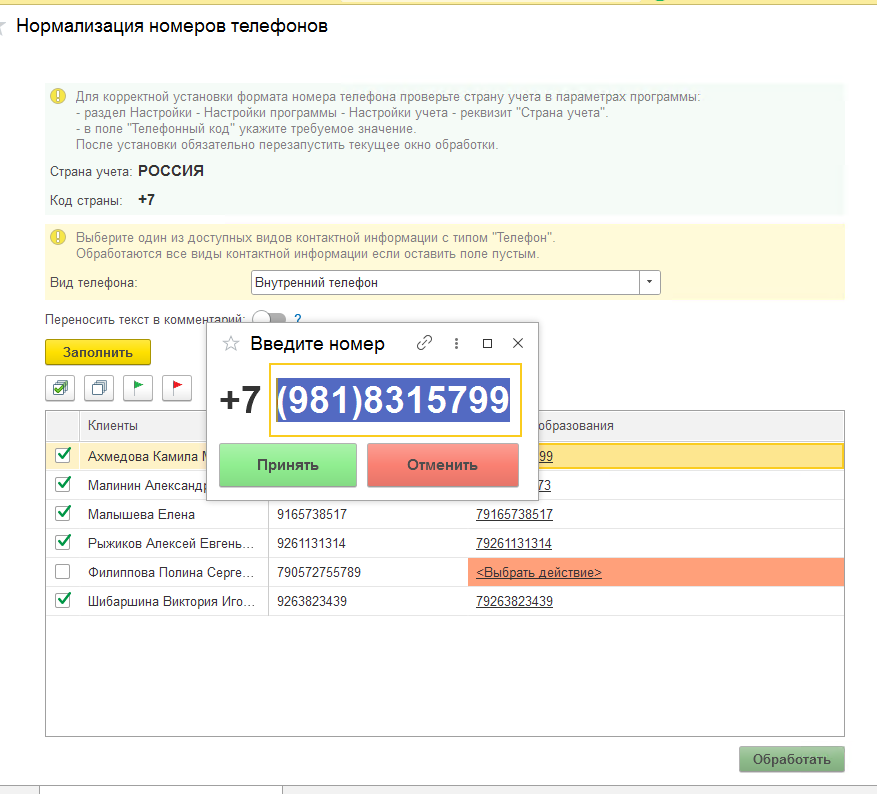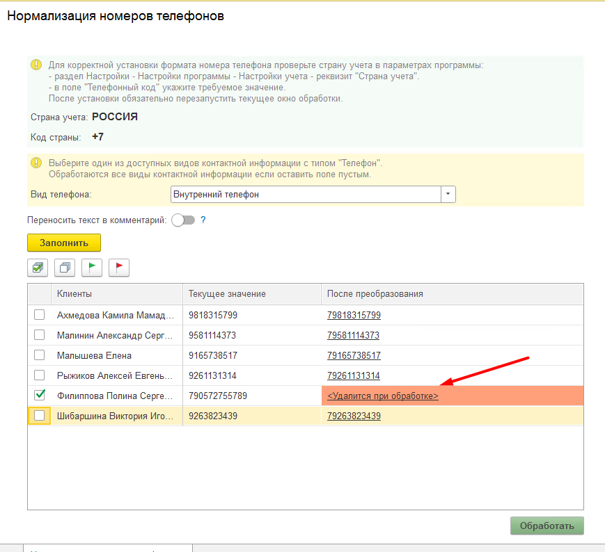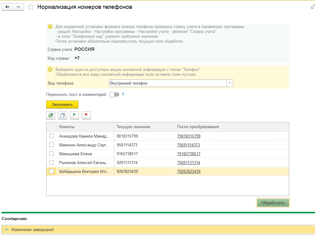 В новом обновлении Енот доработали механизм, который позволит привести номера телефонов в базе к общему виду.