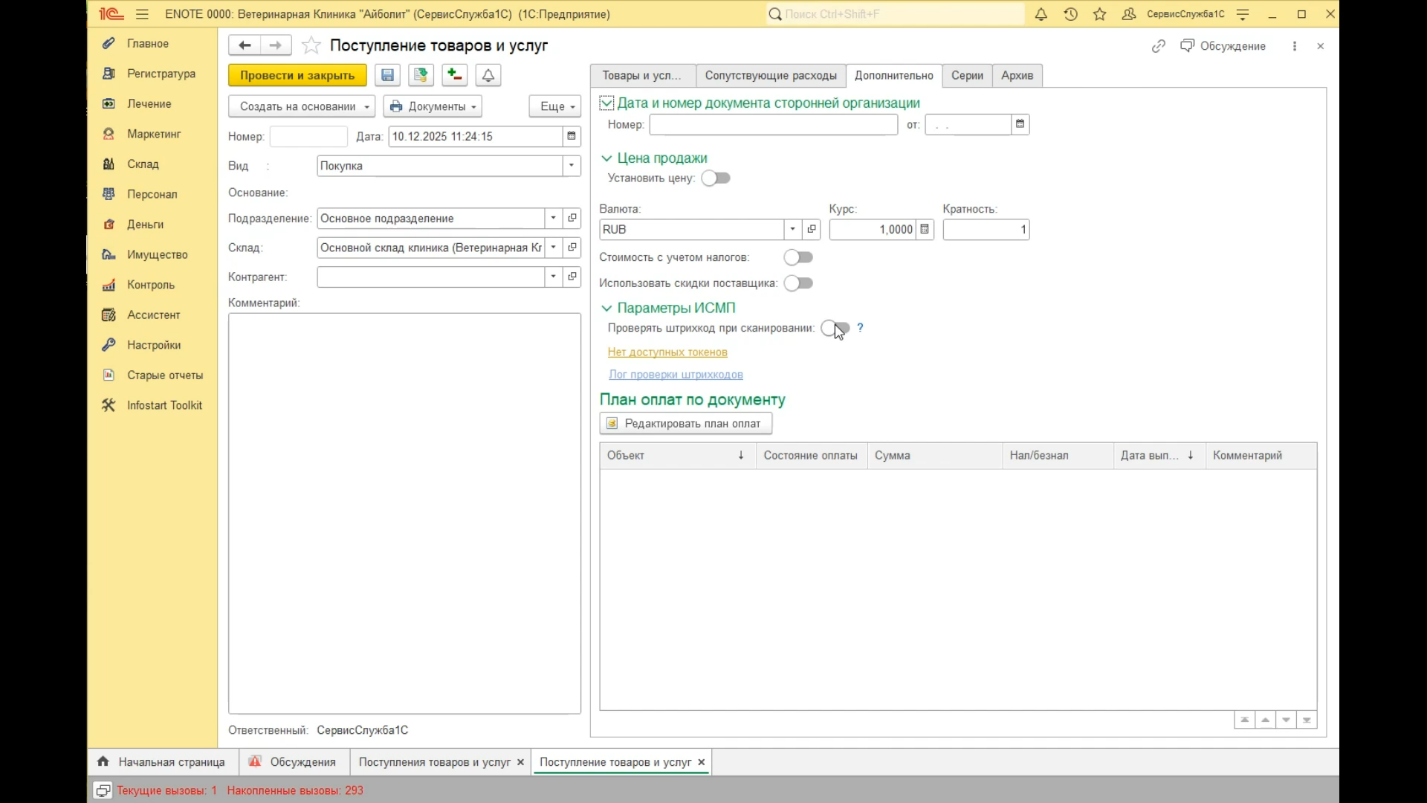 Если откроем вкладку Дополнительно, то найдем там новый раздел, связанный с проверкой марок — Параметры ИСМП.